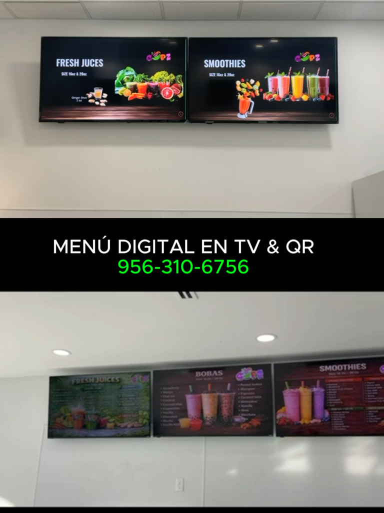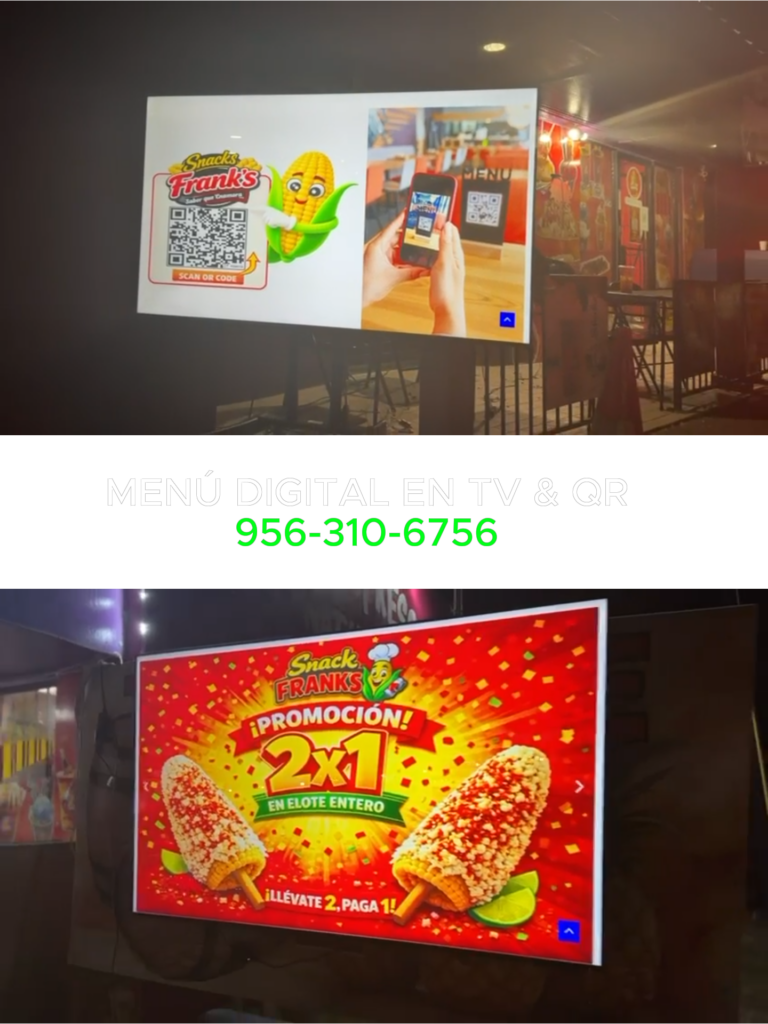 Moderniza tu negocio con menús digitales en TV y código QR.