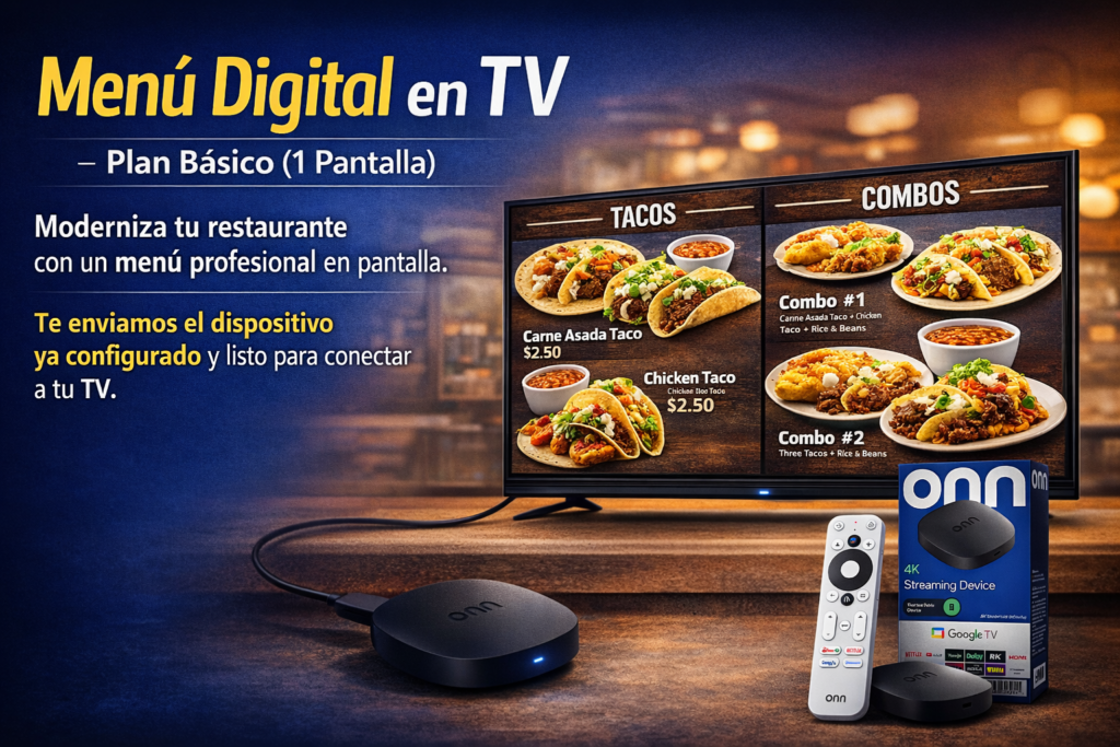 Menú Digital en TV – Plan Básico (1 Pantalla)